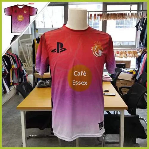 Our wholesale soccer jersey solutions feature intricate patterns—from the Spartan Club’s aggressive geometric graphics to the elegant gradients of Cafe Essex. We ensure that every custom football kit meets professional durability standards, even for high-intensity corporate leagues like DHL.